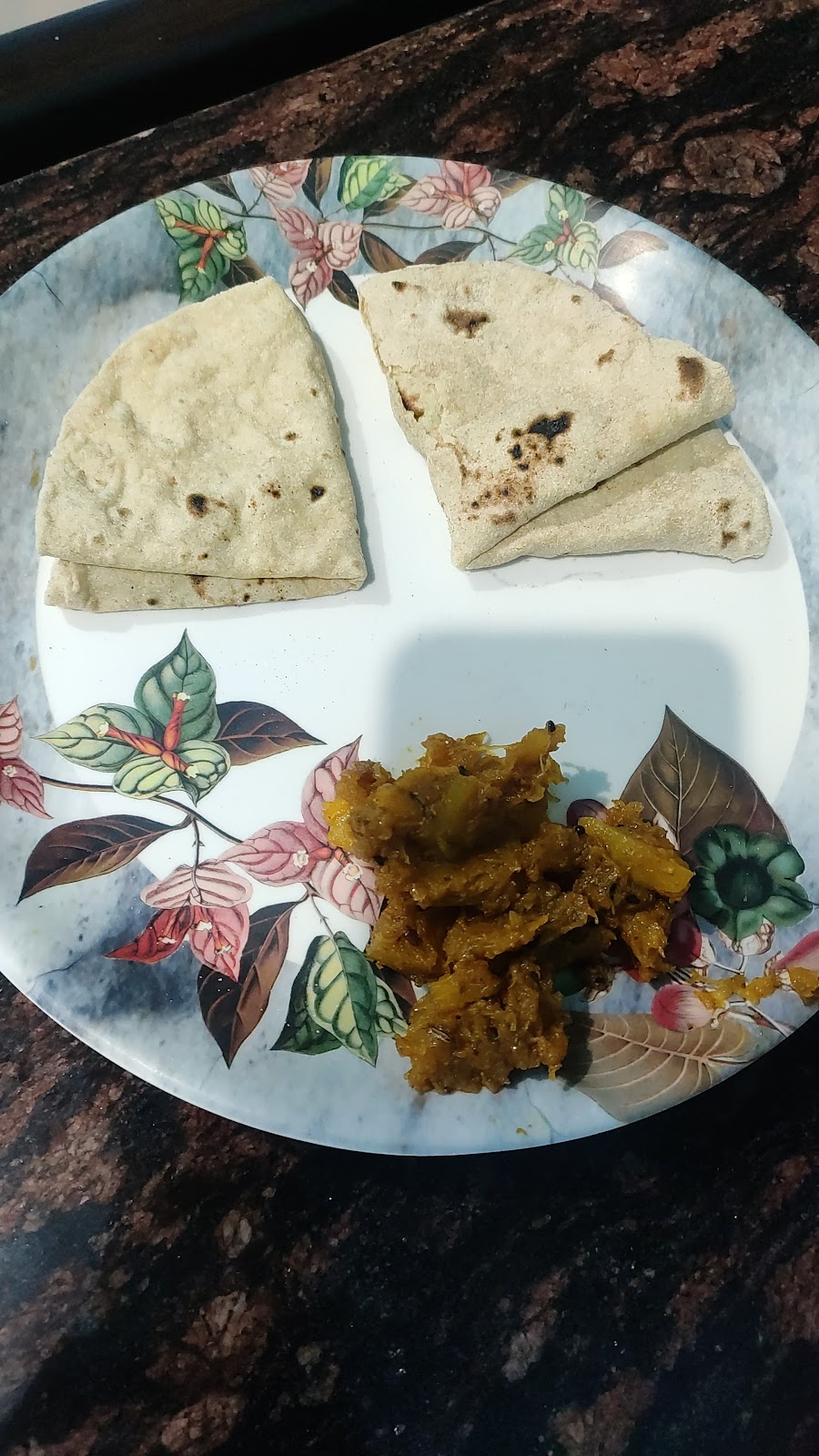 Rice with peanut chutney, pointed gourd fry and bottle gourd fry